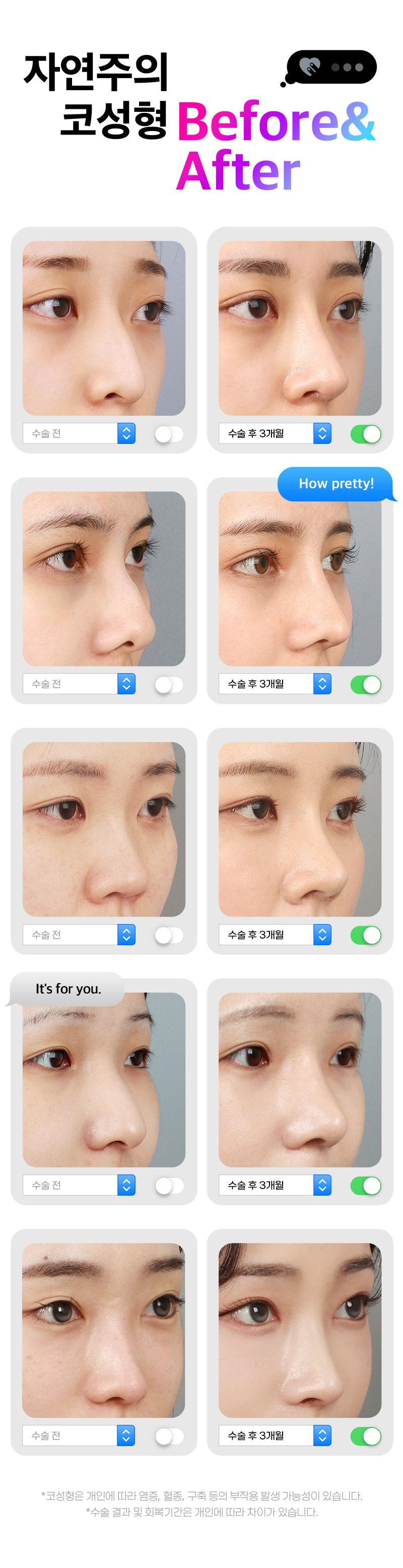 얼굴이 예뻐 보이는 코성형을 합니다.